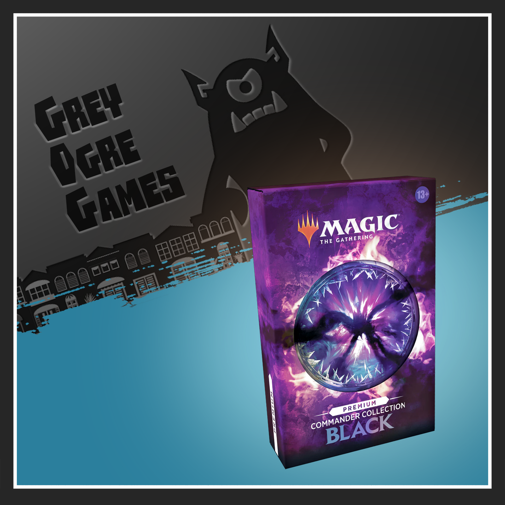 Commander Collection: Black is a boxed set of eight reprinted cards themed to one color and what it does best—in this case black, the color of ruthlessness and opportunity. These cards have been selected to showcase iconic black strategies in Commander, and each one has been given brand-new art with loads of references to popular legendary characters. They'll be right at home in your favorite black deck alongside their legendary counterparts!