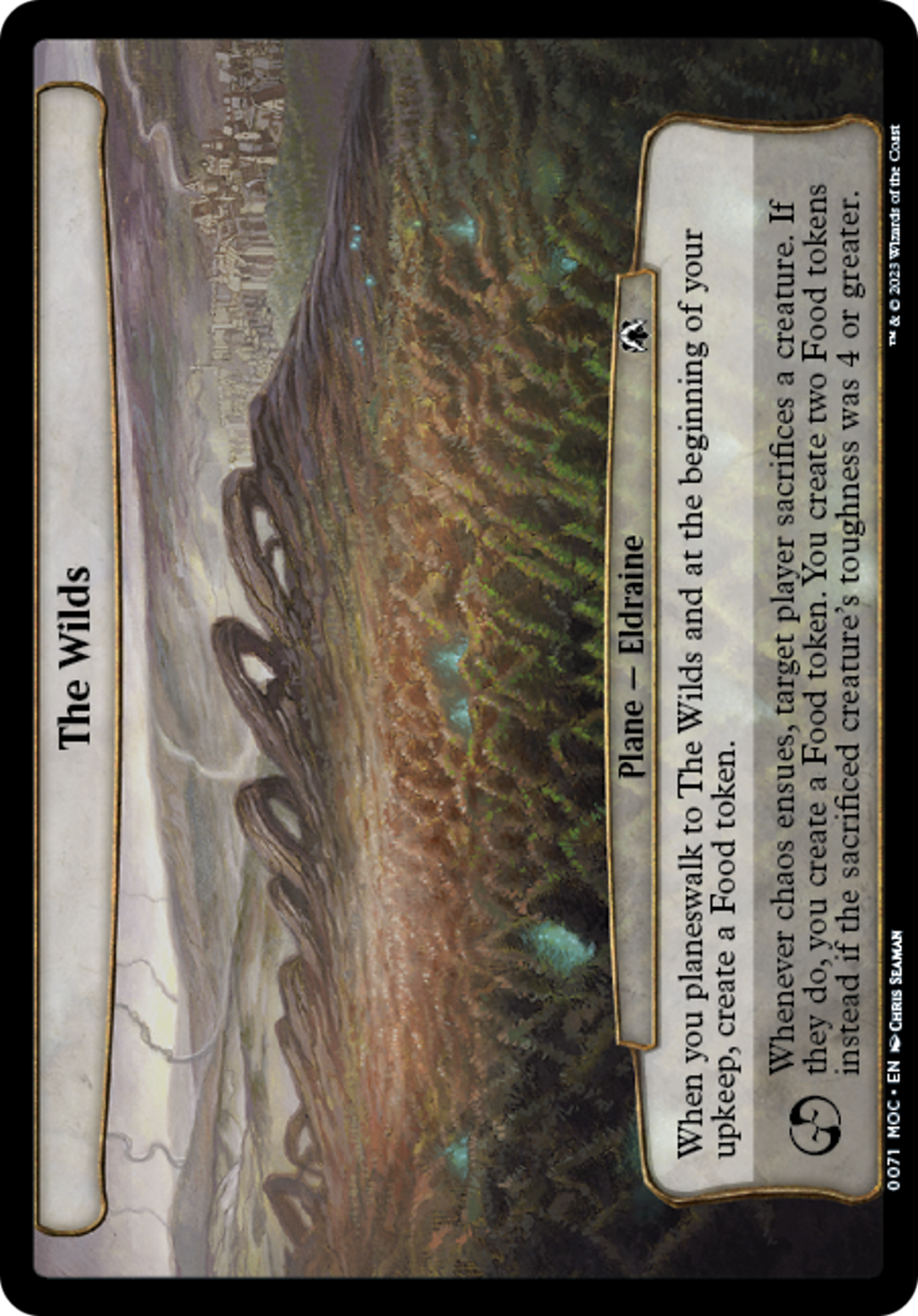 When you planeswalk to The Wilds and at the beginning of your upkeep, create a Food token.