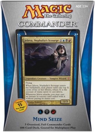 The Commander 2013 product consists of five tri-color 'shard' decks, each 100 cards strong, that are ready-to-play commander decks right out of the box, with the option of choosing one of the three legendary tri-colored creatures each deck includes as the commander.